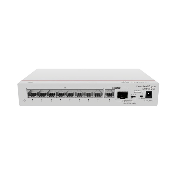 Huawei S110-8P2ST Unmanaged Gigabit Ethernet Switch – 8×10/100/1000BASE-T PoE+ Ports (124W), 1×GE SFP Port, 1×GE Electrical Port, Fanless, AC Power Adapter Included Price in Dubai UAE